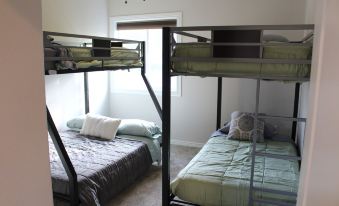 4 bedrooms: 4 bunk beds 1 single bed 1 queen bed 1 king bed and 2 double beds