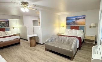 I paid online for a "queen suite." I was given a decrepit room with a handicapped-accessible shower (you need to sit to use it); the bed was lumpy and very olde; and the furniture was ripped and looks like it was used heavily since the 1980s. This place is a shambles, look elsewhere.