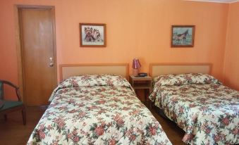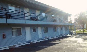 Lovely little family owned motel. Neat and clean with nicely appointed rooms. 1950’s style motel with outside rooms and outside steps to upper floor. Coffee and donuts in the morning around a friendly table. Not fancy but a fun place to stay. A block from town.