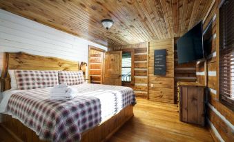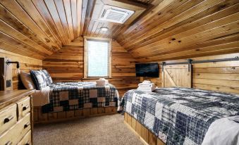“Amazing Grace Cabin” is the perfect property for both indoor and outdoor retreat. This rustic cabin features a wrap around porch with an extended viewing deck. Enjoy the spectacular views from the rocking chairs, hammocks, picnic table, fire pit, or the large hot tub. Once inside, you’ll notice local craftsmanship at its finest with hand hewn logs and beams, custom hand-crafted furniture, and locally sourced stone fireplace.