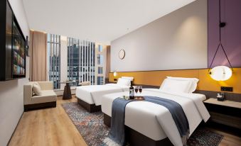 值得誇的還有服務細節:晚上想喝熱水,打電話沒多久就有服務員送來,還順便換了垃圾袋;第二天出門時隨口提了句喜歡房間的香薰,回來發現桌上多了一小瓶同款試用裝,這種被重視的感覺真的很暖。酒店離高鐵站也就二十分鐘車程,打車很方便,去市中心的商場坐公交兩站路就到,出行完全沒壓力。