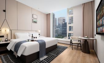 我們訂的觀景房視野絕了,拉開窗簾就是開闊的景色,晚上燈光亮起時更是美到讓人想多待一會兒。房間裏特別乾淨,床品柔軟舒適,躺下就不想起來,隔音也做得很好,完全不會被外面的聲音打擾,睡了個超安穩的好覺。離地鐵站和商圈都很近,出行逛街都方便,性價比超高。