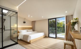 這家民宿是新開業的,老闆還幫我們升級了房間,一進門就看到了超大落地窗,房間佈置得十分精美温馨,浴室幹凈明亮,床品睡起來舒適柔軟,民宿門口還有免費停車,開車去篁嶺很方便,推薦他們家!