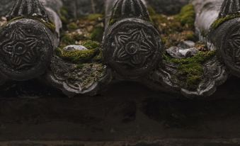 Environment: Quiet, courtyard-style setting with greenery, wooden furnishings, and a serene atmosphere. Features include a garden, tea areas, and small pets .
