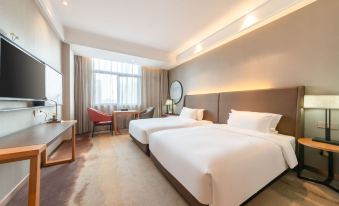 酒店位置很好,出了酒店馬路邊就有公交站台,路邊也有共享電車。馬路對面有個小區,附近超市、KTV、葯店、飯店什麼的都有,吃飯娛樂挺便捷的。酒店服務人員都很好,熱情周到,事事有求必應。房間乾淨整潔,床品安排的朝陽房間,可以俯瞰到城景,很滿意的入住