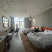 The overall environment of the hotel is still in line with expectations, and the service experience is very average. From the beginning of check-in, the front desk was very unprofessional, speaking hesitantly and relying on a male manager next to me for support. Because the order was redeemed for a free upgrade of the room type, the reply from the front desk was that the room was full and could not be upgraded, which was acceptable. Then a woman at the front desk took the initiative to say that if you bring your child, you will make a sofa bed for you at night, and the child can sleep alone and it is still very spacious. She said that someone in the room will be arranged to make the bed after 8 o'clock. No one called to ask after 8 o'clock and said that it would be arranged immediately. At 8:30, the person in the room came to deliver something and said that they did not receive a notice from the front desk to make the bed. I thought they might be busy and would tell me later. At 8:40, the front desk called and said that this was charged and asked if I still needed it. The reason was that the room type I booked did not have this service. I was upgraded to live in the room, but I could not enjoy the service after the upgrade for free. I was furious. After arguing with the front desk, I kept questioning whether I just wanted to make the bed. No matter what I asked, the front desk only repeated this sentence.