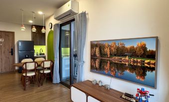 Experience modern living in Ecopark with this minimalist apartment that combines eco-friendly design and urban style. Flooded with natural light through large windows, each space has a stunning and airy view. Finished with friendly wooden furniture and an efficient layout, ensuring comfort and practicality. Enjoy facilities including a cafe, fashion shop, fitness center and parks. This home offers a peaceful and well-connected getaway. Live and love green now! Designed and decorated in a minimalist style, It Dust is confident to bring a relaxing experience to customers. In addition, to enhance the service experience for customers, we provide smart TVs with Netflix Premium, Youtube Premium. You can use the facilities such as outdoor basic gym, swan lake... and the swimming pool ticket is not included. Please note, the swimming pool will be charged separately. Motorbike/Car can be parked in the basement (additional fee). Renting bicycle is available.