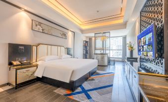 酒店整體氛圍感非常不錯,前台服務熱情、房間特別大還有茶台,而且書架上的書居然是四大名著,喝茶看書真的太安逸了,位置處於中心地帶樓下就是華潤萬家。
