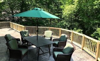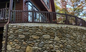 There is a very large rock terrace which overlooks the spectacular winter view of Mt. Mitchell . The home boasts dining furniture for outdoor comfort and recreation. One of the most spectacular waterfalls of North Carolina ( Roaring Fork Falls ) is a short 1.5 mile walk or 3 minute drive from the house. It is a hidden gem. There is the beautiful South Toe River for fishing (be sure to get a license at the Mt. Mitchell Golf Club) or wading and of course, the Mt. Mitchell Golf Course is available for fabulous, shady vistas and excellent golf opportunities. The Golf course has an excellent restaurant, an extensive wine list and there are other local restaurants near the home, also. There is a sports bar in the restaurant for fun and social interaction.