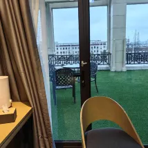 The room is big, smart and has a balcony. Very good and very cost-effective