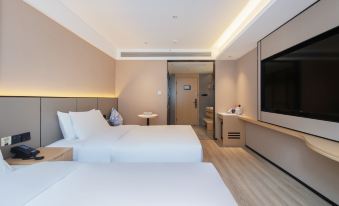 酒店很新,裝修現代乾淨,房間裏有冰箱很方便,位置安靜,休息得很好。服務人員也很友善,下次還會選擇這裏。