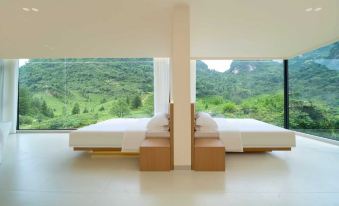 Mountain-View Deluxe Twin Room (Panoramic Floor-to-Ceiling Window + Deep Soaking Tub + Bathroom Wet-Dry Separation)