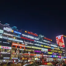 5min to the right is the early morning market where you find lots of local street food.15-20min to the right is the famous lighting walls opposite the university