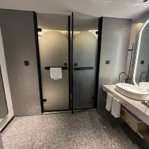The decoration style of the hotel is very fresh and Nordic, I like it very much. The room is cleaned very well, the bedding is very comfortable, and the staff are very warm and welcoming. The bathroom is separated into dry and wet areas, and the partition with the room is also a cement wall, which is clean and dry, and there is no smell, and the water used for bathing and washing will not be everywhere. The only drawback is that the water pressure of the shower is a bit low, and there are no anti-slip measures on the floor, which is a little bit of a safety hazard. The breakfast is quite rich and you can eat enough, but the taste is a matter of opinion. The restaurant floor is a multi-functional area, very modern, and the dining environment is good. The price of accommodation with breakfast at this price is good value for money.