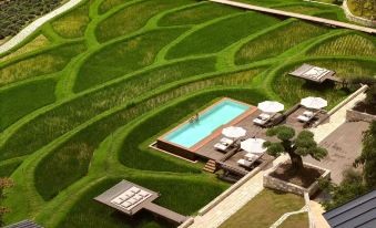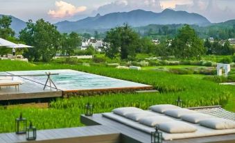 The Sixth Quarter Resort Estate is located in the scenic area of Lvcun, with a construction area of approximately 1,000 square meters. It collaborates with international top brands such as Goodman from the United States, Sika from Denmark, Dedon from Germany, CB from Italy, and AXOR from Germany. Centered on the core values of love, purity, and nature, it integrates the aesthetic of French vacations.