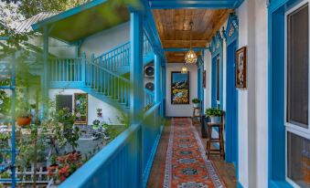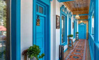 早上一拉開窗簾,就能看到一個温馨的藍色小院,真的是很治癒!房間裝飾很有當地特色,衞生可以的,床品舒適。老闆兄妹倆都很熱情,桌上滿滿當當的乾果杏仁點心和院裏的葡萄都隨便吃,推薦朋友來,超適合疲憊的旅途中躺平!