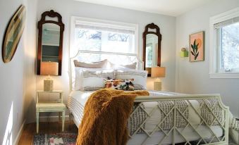 The entry level offers two queen-sized bedrooms with a shared full bathroom, and a king-size master with en suite bathroom and walk-in shower. All bedrooms have base-board heating and brand-new, individual-temperature controlled air conditioning units. Adjoining the bedrooms, the Day Room is charming and cozy. It is a perfect place for a midday respite, puzzles & games, and reading. A new smart-TV and WiFi audio system are available for your use and entertainment. Laundry is available on site with full-size washer and dryer for your convenience.
