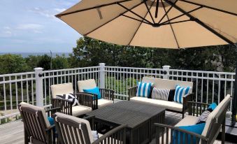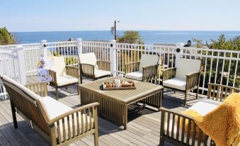 The Cottage is sunny year round; and each room is sunlit throughout the day. You will fall in love with a picturesque, 270-degree ocean view and experience the gentle sea breezes atop our roof deck. Our large roof deck floats uninhibitedly high above the tree line for unparalleled panoramic views. Be the first to catch a sunrise over the ocean while sipping a cup of coffee or tea. At a distance, follow the sail boats tacking in the water and spot the faint beacons from the nearby lighthouses on the horizon. In the evening, wrap yourself in your favorite blanket and watch a memorable sunset. Gaze at the stars flooding the sky as nightfall deepens.