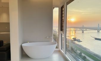 全屋落地窗,樓下就是洞庭湖。屋內設施高端簡潔。兩個卧室都裝了投影機,非常非常滿意的一次住宿,驚喜值拉滿了,必須五星啦!