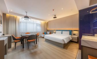 房間所有的東西都是一次性的,有智能聲控和投屏,可以看小豬佩奇。對來旅遊的客人來説比較滿意,覺得很衞生。周圍環境一般,有點像縣城,不過這個酒店還不錯,有停車場,自駕來的話還可以的。