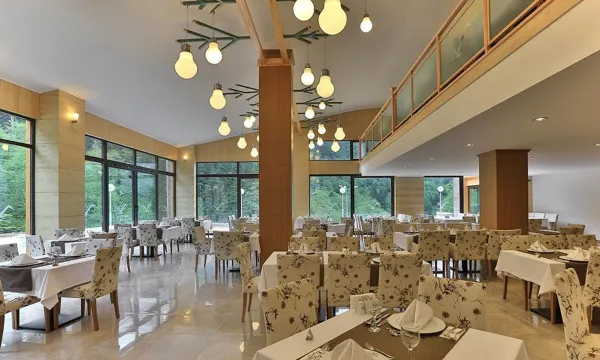 Mayıs 2022 tek gece konakladık,odalar temiz ve geniş ama saat 24.00 de kaloriferi kapatmışlar sabah 6.30 da daha yakmamışlardı Mayıs ayı demeyin gece kar yağdı.Lobide oturalım dedik yemekten sonra şömine yanıyordu güzel odunlar sönmeye başladıkça uyardık ama yeni odun atmadılar Stajyer öğrenciler çalışıyor ama bence eğitim verilmediği için çok kaba konuşmalar servis kötü güleryüz yok eşimin çorbasından plastik parçası çıktı özür yok söylemediler bile mutfağa,türlünün yanında bayat ne olduğunu anlamadığımız pilav,kahvaltı deseniz standart bile değil bayat ekmekler tost makinası koymuşlar tost yapılsın diye saçma Alman turistler vardı ben utandım kahve makinesi var üstünde örtü potta bayat çay Karadeniz de Tek düzgün olan Türk kahvesi pişiren genç hanımdı ama Arap fiyatı 30 TL Türk kahvesi