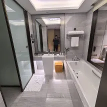 The hotel is very nice, with a swimming pool, bathing center and golf experience center. The rooms are clean and exquisite, and the breakfast is also rich. I will choose to stay here again.