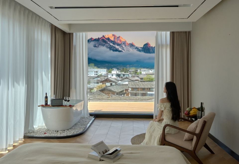 Located at the foot of Yulong Snow Mountain in Lijiang, the millennium old village of Luobaisha Ancient Town is backed by the snow mountain and faces the ancient city. The design of a standalone courtyard isolates the hustle and bustle, offering a magnificent view of the golden mountains of Rizhao through the window. At night, one can lie down and admire the Milky Way, truly realizing the secret experience of "sleeping with the snow capped mountains".