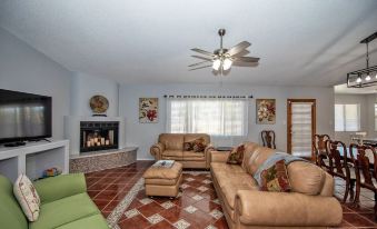 BBQ grill and fire pit for entertainment. Additional room with arcade game for the "kids"About pets:Pets allowed: dogs (limit 4 total).About checkOut:Check out before 11:00 AM.About children:Children allowed: ages 0-17.Not set up for infants..About customRules:Check in - 4 pm or later