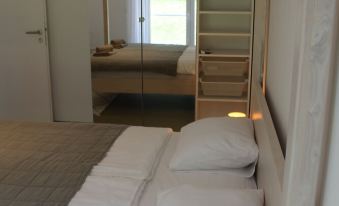 4 bedrooms: 2 single beds 3 queen beds and 1 king bed