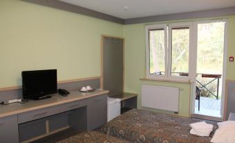 Dom Rybolov mini-hotel is located in the Curonian spit National Park (Lesnoy village) between the Curonian lagoon and the Baltic sea in a pine forest. The amazing nature of the Curonian spit is magnificent at any time of the year and inspires you to create a unique photo session. The mini-hotel is perfect for weddings, corporate events, anniversaries and banquets – the hall has a capacity of 50 people. The well-maintained territory with secure Parking and a children's Playground has everything for a comfortable stay: sun beds and umbrellas, barbecues and gazebos for barbecue. There is also a cafe serving home-made cuisine. On cold evenings, the warmth of the fireplace will create a cozy and pleasant home environment. A peaceful corner, unique landscapes and intoxicating air. All rooms have a private entrance and a terrace with views of the Bay and pine forest. Comfortable beds, refrigerator, kettle, TV, free Wi-Fi, safe, heating, bathroom, shower.