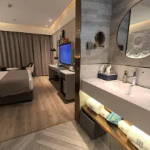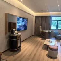 Came to Zhangjiagang on a business trip and chose this hotel temporarily. It's really nice. The hotel is in the Country Garden community. It's easy to find by following the navigation. The lobby is decorated very magnificently. The service of the front desk lady is super enthusiastic. She greeted me as soon as I entered the door, poured tea, and helped with the luggage. There was also Tremella soup in the evening. The room has Xiaoai smart system. The bedding is very clean. The breakfast is also delicious. In short, it is highly recommended.