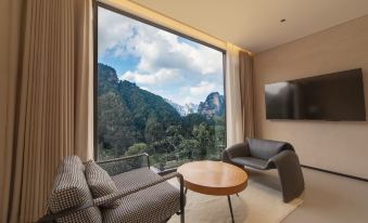 Yunmanshan Residence is located just outside the south gate of Zhangjiajie National Forest Park, surrounded by lush, pristine forests. The architectural style is primarily modern and luxurious, characterized by simplicity and natural elements. The residence promotes a "slow life" philosophy, inviting guests to escape the hustle and bustle of city life and enjoy the tranquility of nature. The rooms are meticulously designed, each with its own unique charm. They are equipped with cozy home furnishings and thoughtful amenities, such as high-end bathrooms and exquisite coffee machines, offering a home-like comfort.In terms of dining, the residence features local chefs who prepare authentic Zhangjiajie Tujia cuisine, such as stewed native chicken and smoked bacon. Additionally, a variety of drinks and snacks are available to satisfy both food enthusiasts and gourmets alike. Beyond comfortable accommodations and delicious food, there are plenty of leisure activities to enjoy. Guests can admire the stunning mountain views from the residence's terrace and breathe in the fresh air of nature. The warmth and comfort of the rooms help guests completely forget the stresses of work. After savoring local delicacies, guests can opt for hiking or cycling, with the scenic views along the way providing a refreshing and invigorating experience.