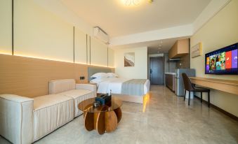 公寓式酒店的 而且要求看海 也沒安排到 ,沒有前台可以服務的 需要洗漱用品都是一個電工送過來的。沒有專門的服務人員。房間很新 感覺甲醛味很重,體驗感一般般。。。。