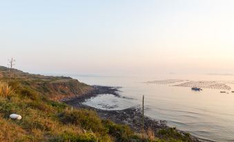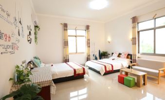 周邊多民宿,且就在鎮海衛甕城旁,然無什補給。溫馨雙床房,房間格局方闊,地瓷磚、壁髹白,飾以編織及文青風壁貼;照明稍暗,但兩面開窗,角落可瞥海灣,與火山島、林進嶼遙相對望。倆雙人床外,設備還有小沙發椅及凳、桌、櫃、穿衣鏡、掛衣架、熱水壺;分離式空調製冷力弱。二、三孔插座有四、五組,WIFI訊號佳。
