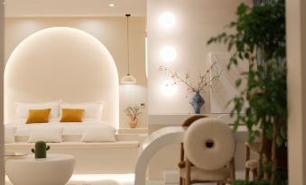 【房間體驗感】都是豪華裝修,看得出老闆花了很多心思在設計上,超精品,連小裝飾品掛畫,小擺件這些也都是選的精品,細節中滿滿設計感和用心,奶油風碰撞洞穴風太有格調,暖光打在奶油風藝術漆上的牆面上,氛圍感直接拉滿。
