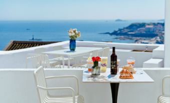 離碼頭很近,外觀設計聖託里尼風,純白,很出片。