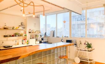 The location is good. The room has a clean appearance, but for those who are allergic to dust mites it is a problem. There is a humidifier in the room but I couldn't turn it on. This is a one day hostel. Because of this feeling. The bathroom in the room is clean. But the women's communal toilet sold the urine. It has appeared clean. I saw the cleaner cleaning but the urine way is strong, needs a deep cleaning with bleach and cleaning products with better smell. You have a cat that looks cool, but if you're allergic it's a problem. There is no filtered water to drink. Just bought. Good that it has a space for cooking. It has a great tv and give to watch movies. It has everything to be a good hostel. But the cleanup is complicated. The receptionist very attentive and polite.