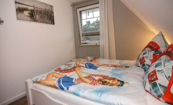 On an area of 67 m² over three floors you will find everything for a relaxing holiday. On the ground floor there is the comfortably furnished living and dining area with a fireplace and a guest toilet. The very well-equipped kitchen contains everything you need for cooking in addition to an oven, ceramic hob, fridge-freezer and dishwasher. In addition to a bathroom with an open shower of 1.20 mx 0.90 m, there are also two bedrooms on the second floor. The first bedroom has a double bed 1.60 mx 2.00 m and the second bedroom has a double bed 1.40 mx 2.00 m. A staircase leads from the second bedroom to the open loft (max. Standing height 2.12 m). Here are two more beds 0.90 mx 2.00 m.