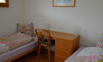 Spacious living room with kitchen, dishwasher, refrigerator with freezer, coffee machine with capsules (Delizio) as well as a fondue- and raclette-set. Chimney, TV/radio, telephone and WiFi. 1 bathroom with toilet, wash basin, shower and washing machine. 1 bedroom with 1 double bed (2x90x200cm). 1 bedroom with 2 single beds (2x90x190cm). Baby cot (60x120cm) incl. bed linen available. Upon request there are 2 folding beds for children available.