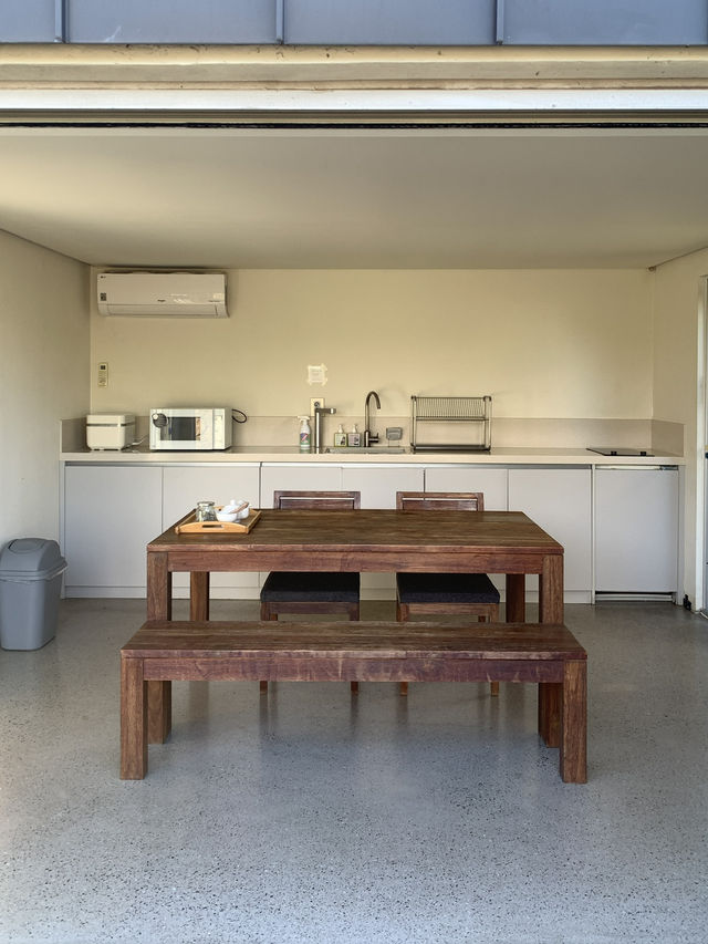A cozy and affordable accommodation with a charming stone wall view in Aewol. Surrounded by stone walls, it exudes the essence of Jeju. Located in Aewol, you can enjoy watching planes all day long, which made me so happy. The kitchen is equipped for cooking, and its folding door window can be opened to let in the gentle autumn breeze while enjoying a meal with a stone wall view. The nighttime atmosphere is also absolutely wonderful. 🖤 📍VT Haga Escape - 184, Hagaro, Aewol-eup, Jeju-si, Jeju ◽️Check-in: 3:00 PM / Check-out: 11:00 AM ◽️Standard: 2 people / Maximum: 4 people (based on Building A) ◽️Includes bedroom, bathroom, and kitchen
