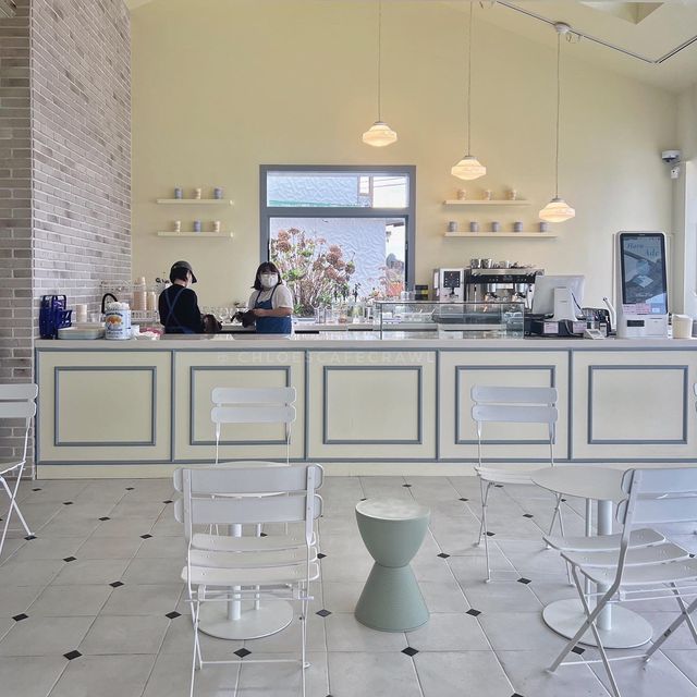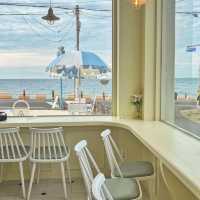 A sky-blue cafe that matches the blue sea of ​​Aewol
