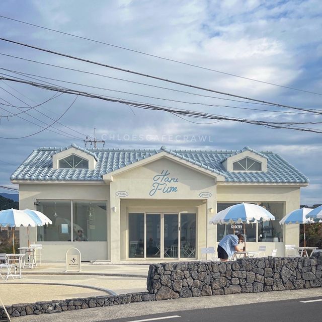 #CafeWithAGoodView #OceanViewCafe #JejuIslandCafe Located right in front of the clear, blue Aewol Sea, Harufilm Aewol Branch's signature sky-blue cafe ☁️ Snap photos in the photo booth and make memories at the cafe's various photo zones, which blend in with the ocean.💙