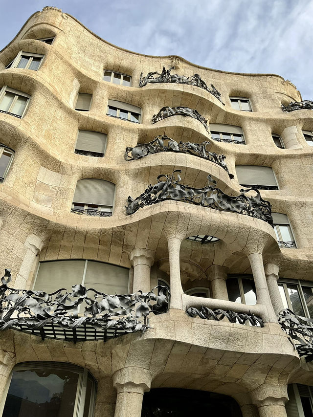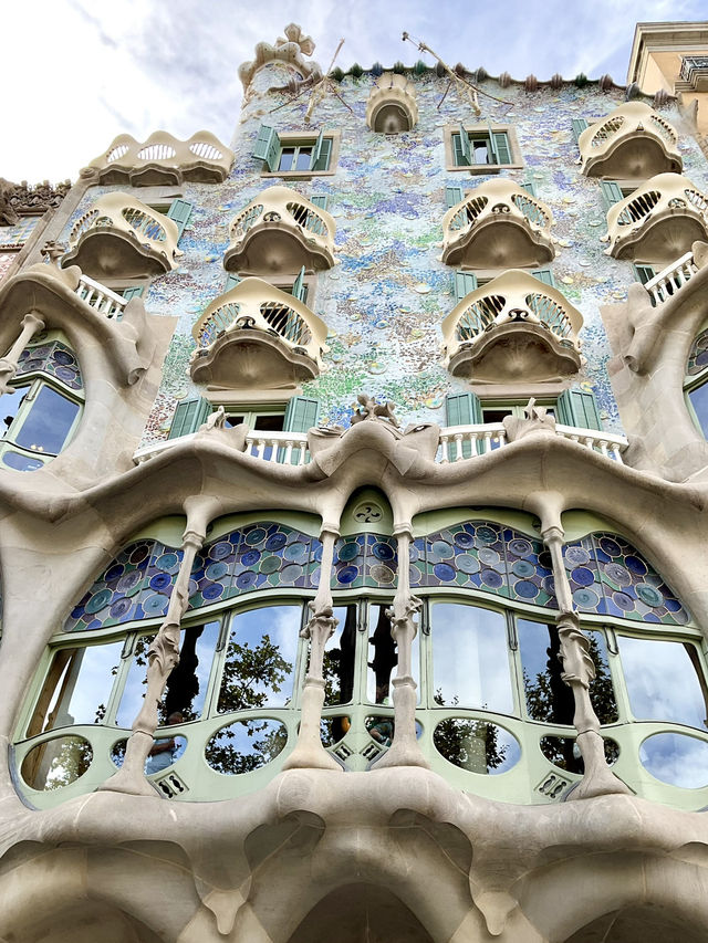 [Casa Batllรณ & Casa Mila like a pastry shop] Photos 1-4 ๐Casa Batllรณ The first course of the Gaudi tour is Casa Bayot. Its exterior is so unique that you'll stop and look at it even if you don't know it.๐ The colorful tiles and the balcony are made of bone-shaped pillars, so it feels similar to the inside of the Sagrada Familia Cathedral. The tiles are made by reassembling broken tiles, which makes it look even more unique. And since Gaudi designed the building with the ocean as a motif, it somehow feels refreshing and reminds me of the Little Mermaid. ๐ง๐ปโโ๏ธ The interior is especially pretty, but I didn't go in because I wondered if I should pay the entrance fee. I regretted it later after seeing the photos..๐ฅฒ The interior is pretty, so I definitely recommend you go in and see it!! 5-7 photos ๐Casa Mila Casa Mila is also a house that Antonio Gaudi started building in 1905 at the request of the Mila couple, who were famous for being very wealthy in Barcelona, โโand it is said that it was completed in 5 years. At first, there was a negative reaction from Barcelona citizens, but as time passed, it is said that he approached the architecture from a sculptural perspective and built it in a unique way that had never been done before. It is said that it was designated as a UNESCO World Heritage Site. ***tmi) Casa, Casa means "house" in Spanish๐ #Barcelona travel #Spain travel #Europe travel #Barcelona #Spain #Gaudi tour #Casa Mila #Casa Batllรณ #Casa Mila #Casa Batllรณ #barcelona #spain #walking travel #Life shot spot #Life travel destination #City travel