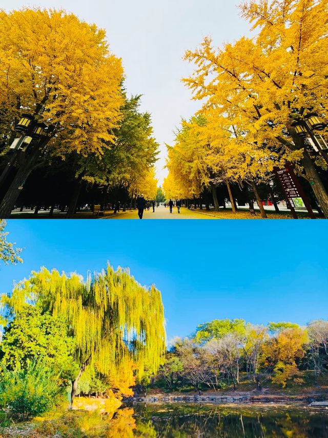 Ditan Park 💕 Ditan Park is a place that combines natural beauty and historical culture. Every late autumn, the ginkgo and maple trees in the park become the focus of photography enthusiasts. Their unique colors and light and shadow are particularly eye-catching in the sunlight, as if the fusion of nature and history unfolds in the gentle caress of the autumn breeze. 💕 Entering from the north gate, a golden light appears, which is the golden world of the ginkgo avenue. The golden leaves are scattered all over the ground like gold powder. Walking among them, it is like being in a golden ocean. The red walls on both sides complement each other, and the mottled light and shadow are intertwined, like a poem and a painting. 💕 The red walls of Fangze Altar are witnesses of history. The temple of the Emperor's Room looks solemn and mysterious in the autumn sun. The sunlight shines through the autumn leaves on the red wall, and those light and shadows seem to tell the stories of the past and present. 💕 In addition, there is also the place of ancient trees in the park described by Shi Tiesheng. People walking among them can feel the tranquility and depth described by Mr. Shi Tiesheng. This is not only the home of nature, but also the home of people's hearts. 💕 The mysterious "sea" of Ditan is an experience in the hearts of tourists. On a sunny afternoon, the sunlight passes through the layers of leaves and shines on the wall, sparkling like the sea. This natural beauty and the interweaving of light and shadow make Ditan Park a place worth exploring and experiencing. 💕🫰 In short, the autumn of Ditan Park is a beautiful picture, which attracts people to explore and appreciate with its unique charm. There is not only the beauty of nature, but also the sense of history. Whether it is walking on the ginkgo avenue, feeling the ancient charm of Fangze Altar, or experiencing the quiet place of Shi Tiesheng, it is unforgettable.