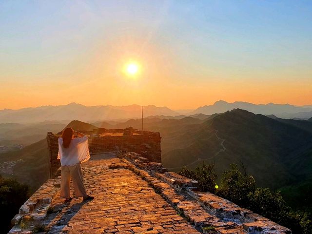 Sunset at Simatai Watching the sunset from Simatai was magical. As the sun dipped behind the jagged mountains, the Great Wall stretched across the ridges like a ribbon of history bathed in golden light. The stones warmed in the fading sun, and the shadows of the watchtowers grew long and dramatic. The air was calm, carrying the faint scent of pine and earth, and for a moment, the mountains, the Wall, and I felt perfectly still together. The colors changed from gold to pink to deep orange, reflecting off the valleys below and turning the landscape into a living painting. Seeing the sunset here isn’t just about the view — it’s a moment of awe, a chance to feel the centuries of history, the effort, and the resilience embedded in every stone, all illuminated by nature’s final light of the day.