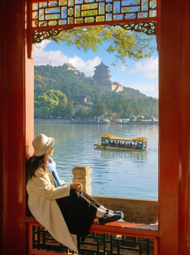 When you come to Beijing, you must check in at the stunning picture frame spot in the Summer Palace! This hidden angle at Binfeng Bridge is truly amazing. 📍Location of Binfeng Bridge: Inside the Gengzhi Tu Scenic Area of the Summer Palace, Haidian District, Beijing, near the entrance at No. 19 Xinjian Gongmen Road 📸Photo Tips: 1. The best time is before 10 AM or after 3 PM; the light is softest at sunset 2. Stand at the bridgehead to frame the Tower of Buddhist Incense in your shot 3. Wearing Hanfu or light-colored clothes makes for great photos 4. Wait for a small boat to pass across the lake and snap the moment 💡Travel Suggestions: - It’s recommended to enter from Xinjian Gongmen; it’s a 10-minute walk to Binfeng Bridge - This spot is not crowded, perfect for photos without the crowds - After taking photos, you can continue exploring the nearby Gengzhi Tu Scenic Area - The park opens at 8 AM; going early offers the best lighting This is truly a magical spot I discovered in the Summer Palace. The scene of the Long Corridor and the Tower of Buddhist Incense framed together is as beautiful as a traditional Chinese painting. When the sun shines, the lake sparkles romantically—photographer friends, let’s go!