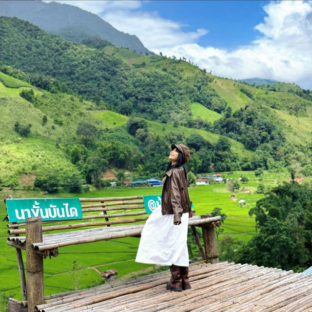 🌾🏞️ Ban Wer Rice Terraces Viewpoint - Nan 🌿✨ A stunning spot for nature lovers and photographers 📸💛 Located in Ban Wer Village, Pua District, Nan Province, this rice terrace agricultural area retains its traditional beauty. 🌾🏔️ 🌅 Highlights • Admire the lush green rice terraces, interspersed with mountains and morning mist. 🌄 • Feel like you're on a postcard from every angle. Beautiful photos from every angle. 🌿📸 • The peaceful and quiet atmosphere is perfect for those who enjoy chilling and nature. 🧘♀️🍃 💡 Tips • In the morning, you'll see the mist floating above the rice fields, absolutely stunning. • Comfortable, slip-resistant sneakers are recommended. • Bring a wide-angle camera or phone to capture every step of the way. 🌾✨ #BanVerRiceTerrace #NanVibes #NatureChill” #GetDiscountsWithoutLuck