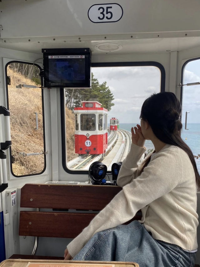 📍Haeundae Blue Line Park Sky Capsule Busan's popular Sky Capsule train runs slowly along the coastline. 🚡 This Sky Capsule train, located within Blue Line Park, is a small, scenic train that travels slowly from Mipo Station to Cheongsapo Station in approximately 30 minutes. The colorful capsules, which seat one to four people, offer a private space for travel, making it a popular choice for couples and families. From the train window, you can enjoy breathtaking views of Busan's ocean, rock formations, lighthouses, and more. The journey from Mipo Station to Cheongsapo Station is especially recommended for its beautiful ocean views! How to Reservation ○ Official Website 1. Access the reservation page on the official English website → Click “Make a Reservation”  2. Select your departure station (Mipo or Cheongsapo), desired date and time, and number of people (2-4). 3. Accurately enter your nationality, email address, and phone number in the required information entry form.  4. Agree to the terms of use and cancellation policy. 5. Select “foreign credit card” as your payment method. 6. Enter your credit card information and pay. 7. Once complete, you will receive a mobile ticket with a QR code via email or KakaoTalk. ○ Book through Trip.com ○ Purchase at the counter on the day You can also purchase tickets on the day, but they may sell out by midday and the lines may be long due to their popularity. 💦 If you're purchasing tickets on the day, I recommend going first thing in the morning! I took the trip from Mipo via Cheongsapo Station, and after getting off at Cheongsapo Station, I walked to Dalitli Observatory! A skywalk with a transparent glass floor. 🌊 Watching the waves crashing below was thrilling! The walk takes about 10-15 minutes! 🚶 I encourage everyone to try the Sky Capsule experience! ♩ #Busan #BusanTrip #HaeundaeSkyCapsule #HaeundaeBlueLinePark