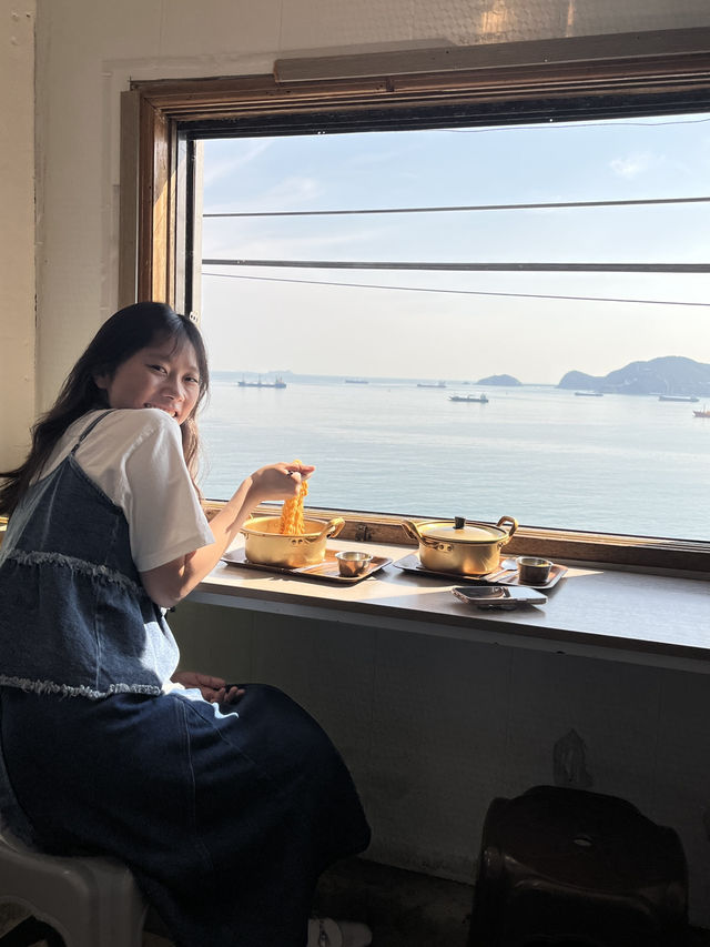 One of my favorite spots in Busan - Baeksand Beach. Walking slowly up the coastline, you'll pass a small shop selling instant noodles! Please! You must go! It's so beautiful to photograph! The sunlight shining on the sea, twinkling with the instant noodles, is simply blissful! There are also quite a few cafes along the way, so you can stop and rest whenever you get tired. Time seems to pass more slowly here. I highly recommend planning a two or three hours here, slowing down and enjoying the ocean. 🌊 Having Moment, located outside, is a very popular cafe lately. Their sesame latte is incredibly strong, and surprisingly, it's not what you'd expect! You guys should go and try it! #Baeksand Beach Culture Village #Busan #BusanTravel