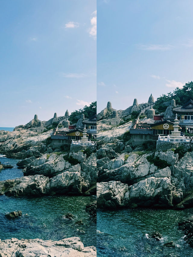 During my trip to Gijang, Busan, I visited Haedong Yonggungsa Temple, which is perched on a seaside cliff, offering a breathtaking blend of temple and ocean scenery. As soon as I entered, the refreshing sea breeze and the sound of waves heightened my anticipation for the journey. Walking slowly along the trail, I was captivated by the dragon sculptures, intricately designed pagodas, and bridges set against the backdrop of the sea. Standing on the bridge that stretches toward the ocean, I felt a sense of tranquility as the gentle sound of waves seemed to cleanse my mind. The sunlight shimmering on the water, harmonizing with the temple's beauty, created a picturesque scene perfect for capturing in photos. Throughout the temple, there were spaces to make wishes and rest points to take a break, making it an ideal spot for a leisurely visit. Haedong Yonggungsa is not just a sightseeing destination to explore a temple but a place where you can stroll by the sea and feel a sense of healing. I highly recommend including it in your Busan itinerary to enjoy a unique experience where the sea and tradition come together. 📍 Haedong Yonggungsa Temple, Gijang-gun, Busan